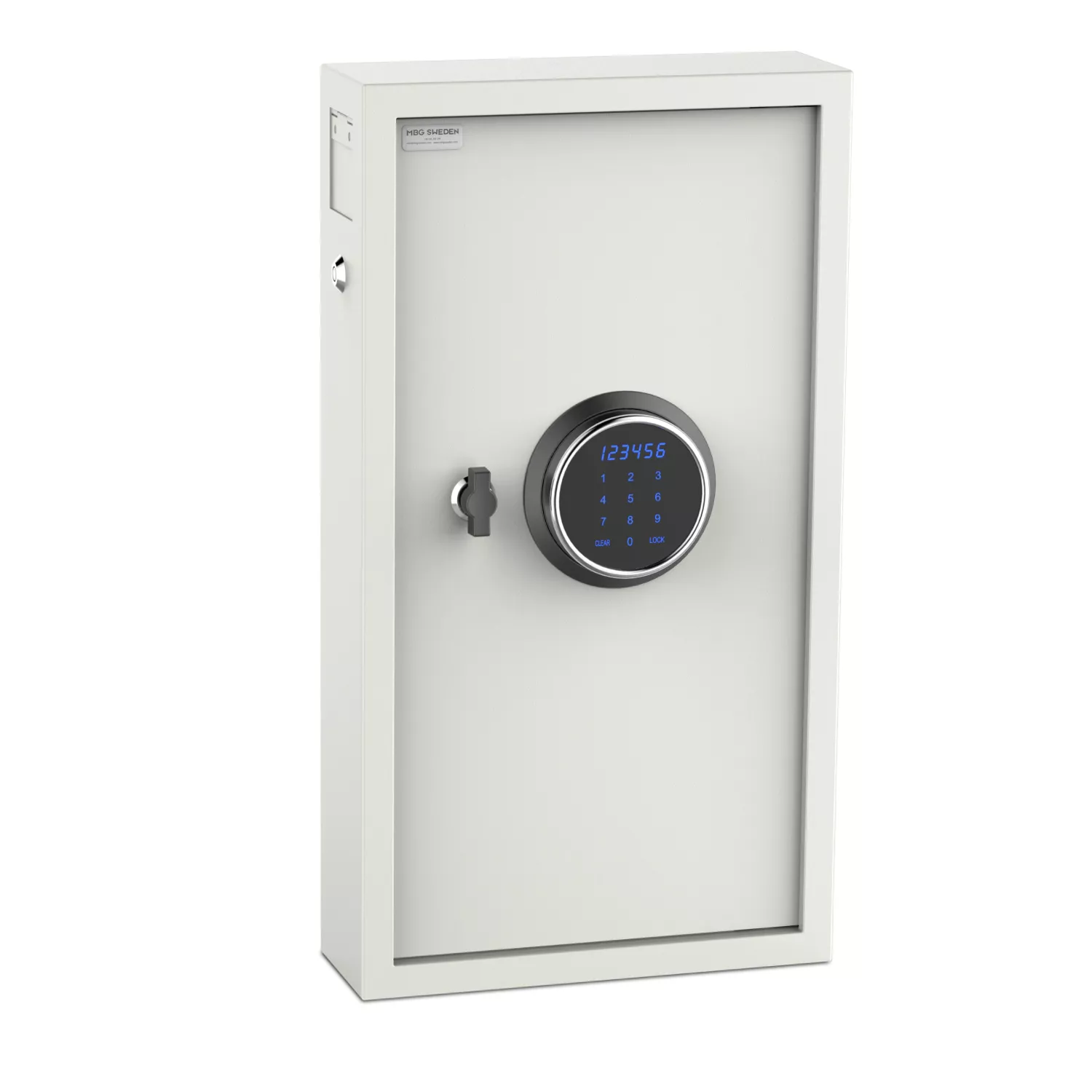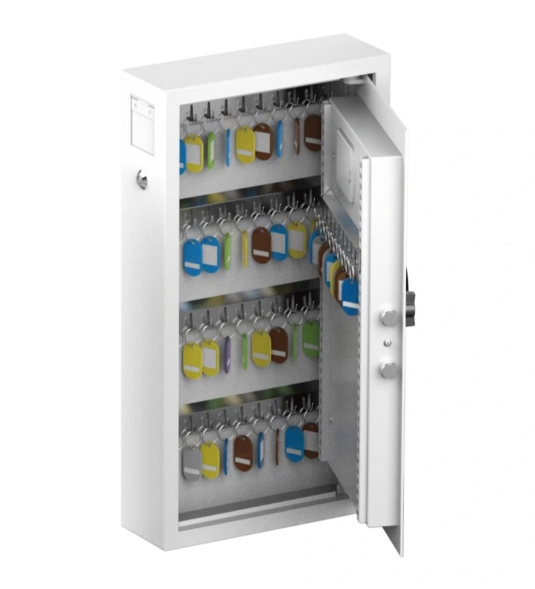 Skåpväggarna består av 3 mm stålplåt vid skåpdörren, samt 1,8 mm stålplåt kring väggarna. Nyckelskåpet är utrustat med ett modernt programmerbart elektroniskt kodlås med touch-knappar.