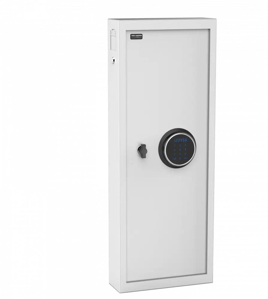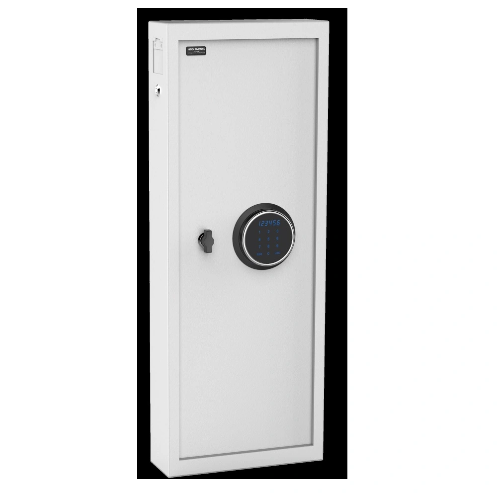 Skåpväggarna består av 3 mm stålplåt vid skåpdörren, samt 1,8 mm stålplåt kring väggarna. Nyckelskåpet är utrustat med ett programmerbart elektroniskt kodlås med moderna touchknappar.