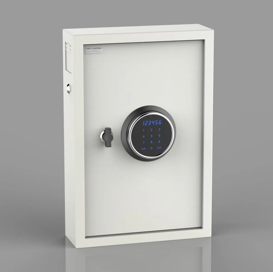 Skåpväggarna består av 3 mm stålplåt vid skåpdörren, samt 1,8 mm stålplåt kring väggarna. Nyckelskåpet är utrustat med ett programmerbart elektroniskt kodlås med moderna touchknappar.