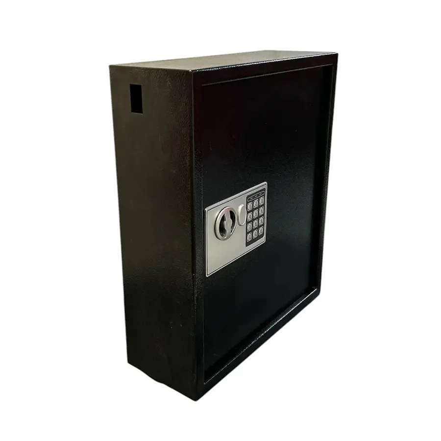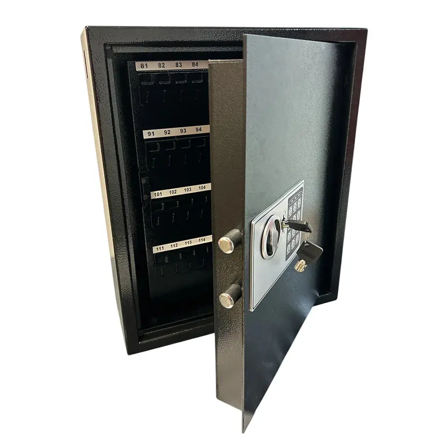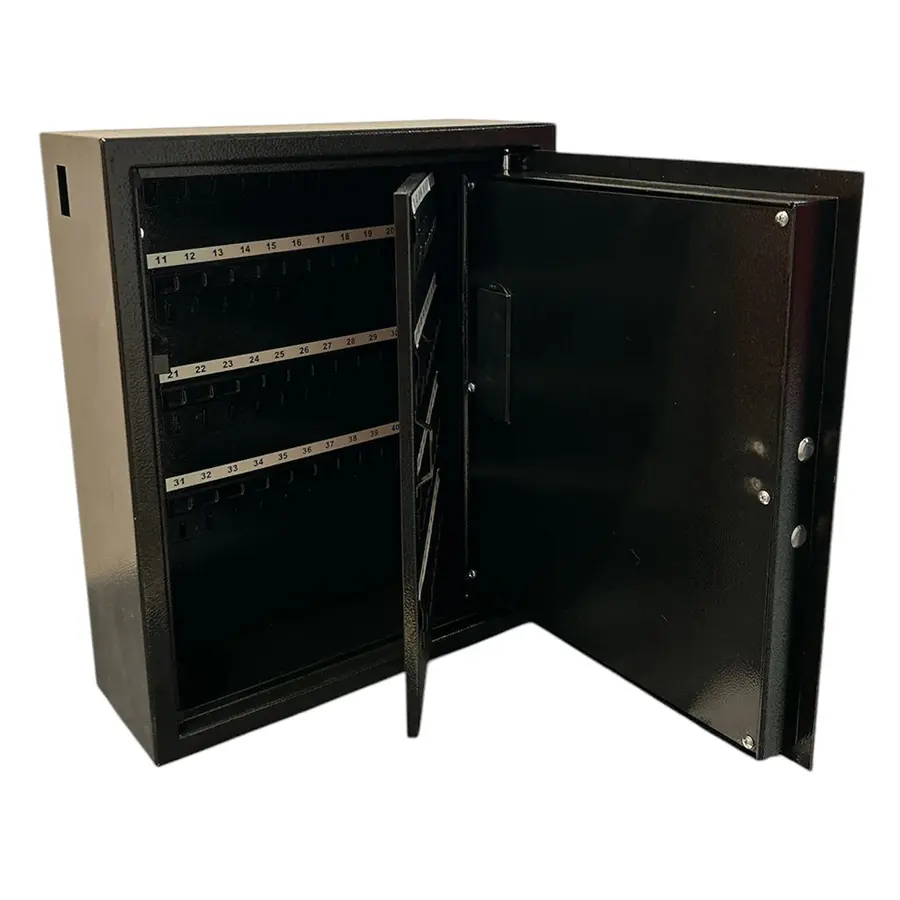 Skåpväggarna består av 2 mm stålplåt i stommen, samt 3 mm stålplåt i skåpdörren. Nyckelskåpet är utrustat med ett programmerbart elektroniskt kodlås. Skåpet är utrustat med en extra inre dörr (panel) med krokar. (se en av bilderna). Detta gör att skåpet får plats med ett stort antal nycklar utan att ta upp för mycket väggyta.