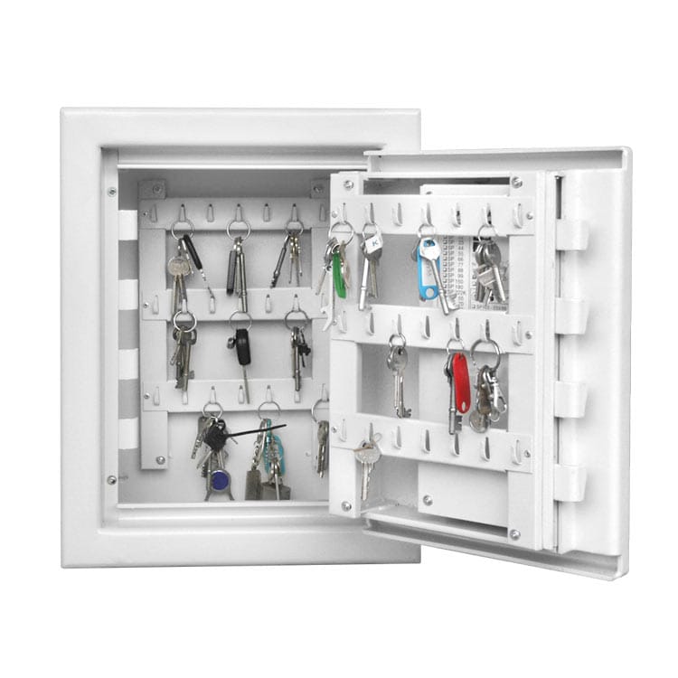 Det minsta säkerhetsklassade nyckelskåpet på marknaden. 42 nyckelkrokar & utrustat med kodlås eller nyckellås. SSF3492-klassat och godkänt.