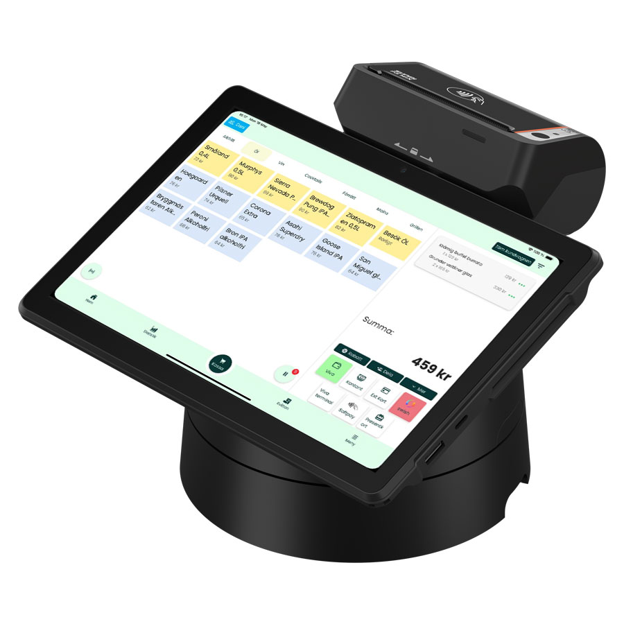 Detta är ett roterbart stativ som gör enheten mer mångsidig i kassamiljöer och andra affärssystem. Placera enkelt surfplattan i stativet för stabil laddning via pogo-pins och använd den som en fast arbetsstation. Dockan har flera anslutningar, bland annat LAN (RJ45), USB-portar, kassalådeport (RJ12) och seriell port, vilket gör det möjligt att koppla in tillbehör som streckkodsläsare, kunddisplay och andra enheter. Går att vrida 180 grader.