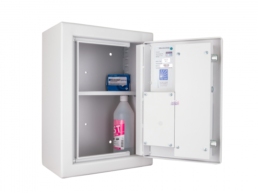 Skåpet passar bra för serviceboenden, veterinärer, sjukhus, eller andra tillfällen när man behöver förvara narkotikaklassade läkemedel.