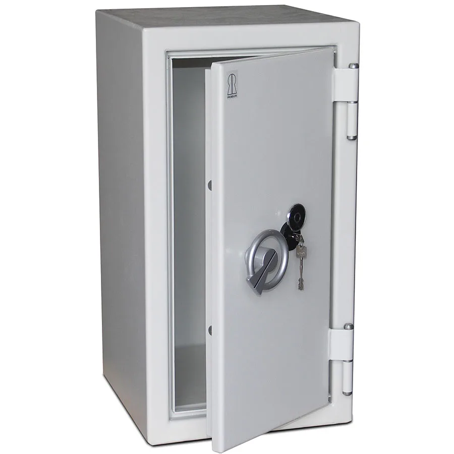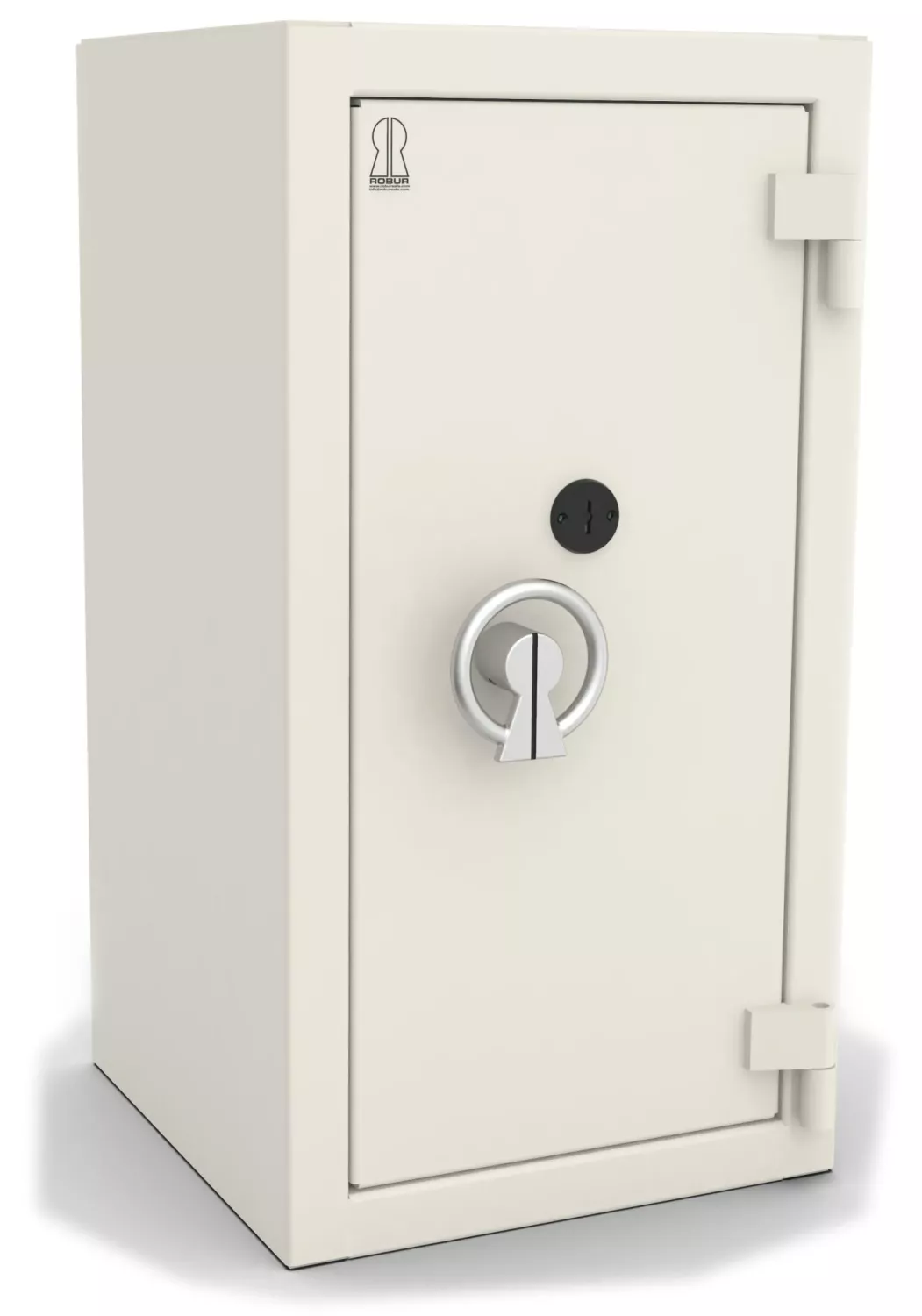 RSK-serien är testad av SSF och certifierade av DNV enligt SSF 3492. Skåpet kan efter konsultation med ditt försäkringsbolag godkännas för kontantförvaring upp till 40 000 kr. Skåpen är byggda i 4 mm stålplåt och har ett avlastat och väl säkrat låssystem, skyddat mot såväl borrning som manipulation, slag och brytning.