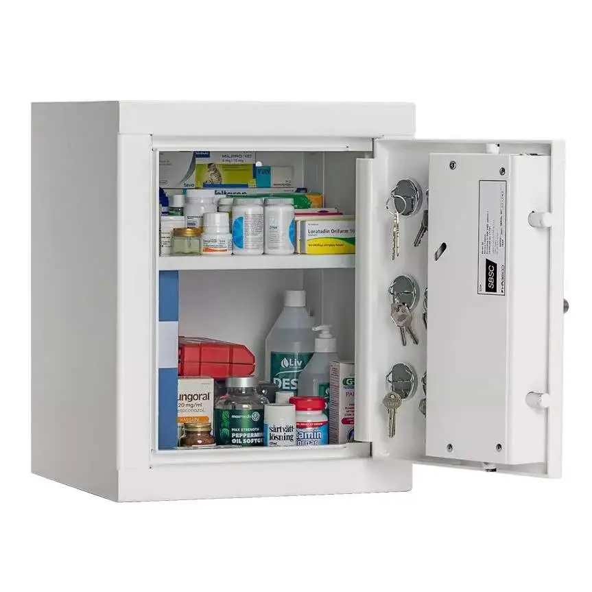Omtyckt, litet säkerhetsskåp med stora möjligheter för olika förvaringsmöjligheter. SSK 50 är det minsta skåpet i Safir-serien med SSF3492-klassade säkerhetsskåp. Skåpet är säkerhetsklassat enligt den svenska standarden SS 3492, för förvaring av värden upp till 40 000 kr efter konsultation med ditt försäkringsbolag, så länge skåpet är bultat i golv/vägg eller viktas till minst 150 kg.