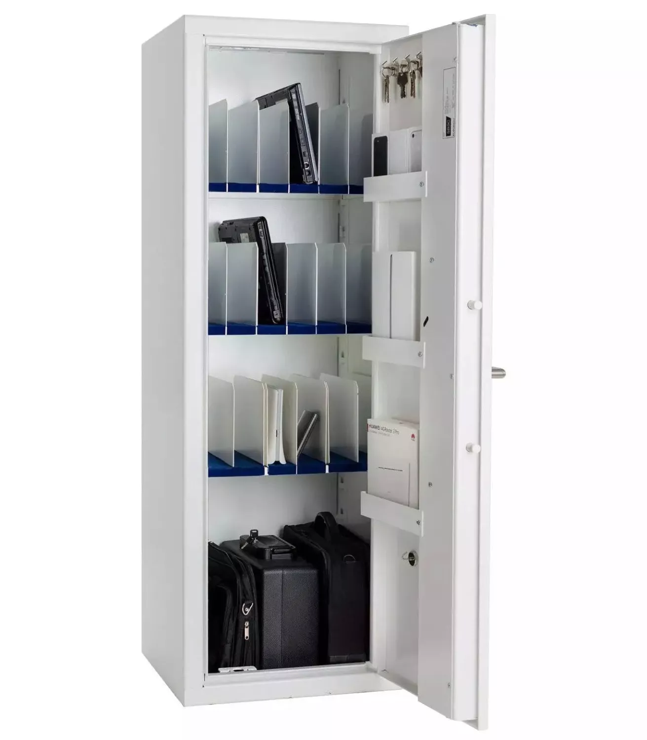 Omtyckt säkerhetsskåp med stora möjligheter för olika förvaringsmöjligheter. Skåpet har en rad tillbehör, bl.a. nyckelkassetter, nyckellister, dörrboxar, laptopstöd, hängmappsramar, småfacksmoduler och annat (se tillbehör nedan). Skåpet är dessutom säkerhetsklassat enligt den svenska standarden SSF 3492, för förvaring av värden upp till 40 000 kr, så länge du konsulterat ditt försäkringsbolag och skåpet är bultat i golv/vägg. Skåpet är tack vare sin längd även populärt som vapenskåp för jaktgevär och tillbehör.