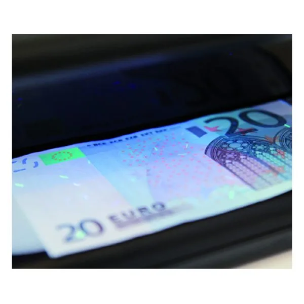 Lampan garanterar hög säkerhet mot förfalskade sedlar, till ett billigt pris. Sedlar och andra kontanter innehåller en rad säkerhetsegenskaper för att garantera dess autenticitet. Denna snygga lampa testar sedlarnas äkthet på två sätt: med en magnetsensor som verifierar sedelns magnetband, med en 9 W vit lampa för verifiering av säkerhetstrådar och vattenstämplar.
