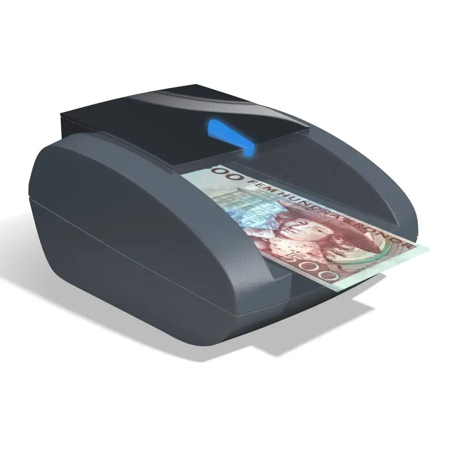 Sedlar kan matas in från alla fyra håll. Den känner automatiskt igen valören och adderar till en total som visas i displayen. Den räknar en sedel åt gången. Detektorn/räknaren ger även en på- och avslagbar akustisk signal om en falsk sedel upptäcks. Skanning av sedel tar ca. 0,3 sekunder.
