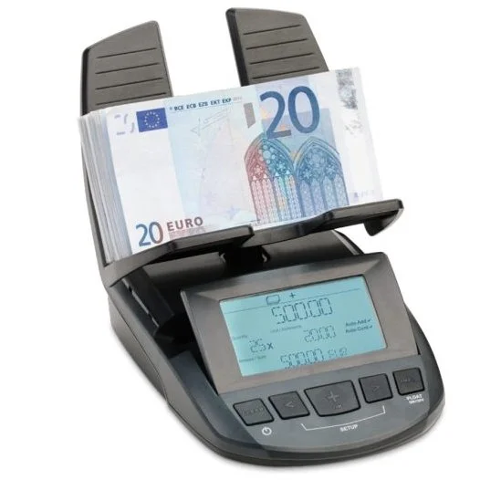 Vågen räknar antal och summa per valör, samt visar en löpande total. När en viss valör räknats färdigt stegar vågen automatiskt vidare till nästa valör, och ger i slutändan en ihopräknad sammanställning över dagskassans värde och antal för de specifika valörerna perfekt för bankens insättningsnota.