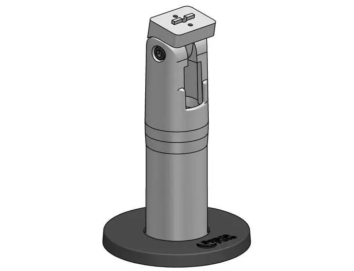 Stolpen är 120 mm hög och levereras med skruvar för montering i disk, samt med självhäftande klisterring för montering utan skruv (t.ex. på glasdisk). Kortterminalens kablage kan dras genom röret, och fästplattan för terminalen fästs längst upp på stolpen.