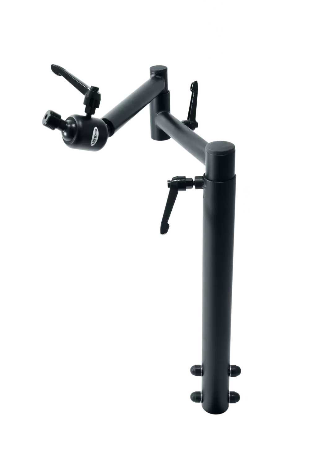 Stativ med två svängarmar och teleskopfunktion (450-650 mm), för montering i t.ex. lastbilar. Golv-eller sidofäste väljs efter behov. Kompletteras med lämpligt PC-/skärmfäste.