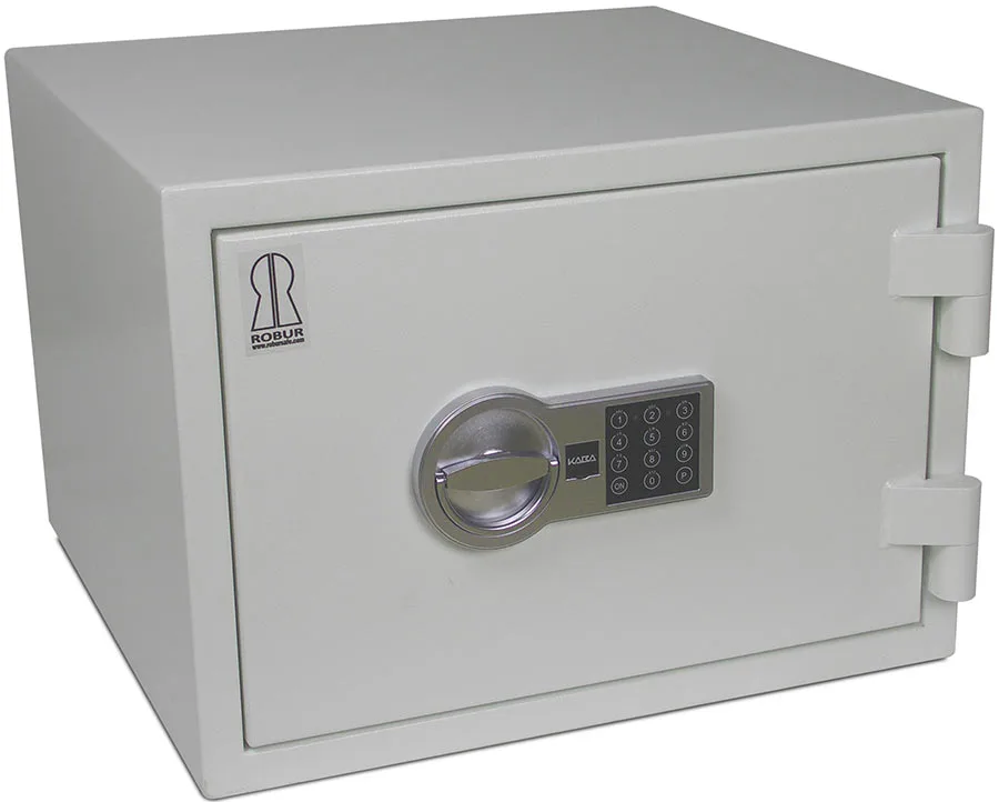 Kraftigt, brandisolerande stöldskyddsskåp. För det lilla företaget eller för värdesaker i hemmet. Genom att kombinera brandskydd och stöldskydd så får du heltäckande säkerhet mot de två största riskerna inbrott och brand. Skåpet är även förberett för bultning i golv.