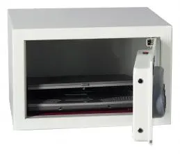 Skåpet är byggt av 2 mm stålplåt i väggar och 6 mm i dörr och är försett med elkodlås som låser med två st låskolvar.