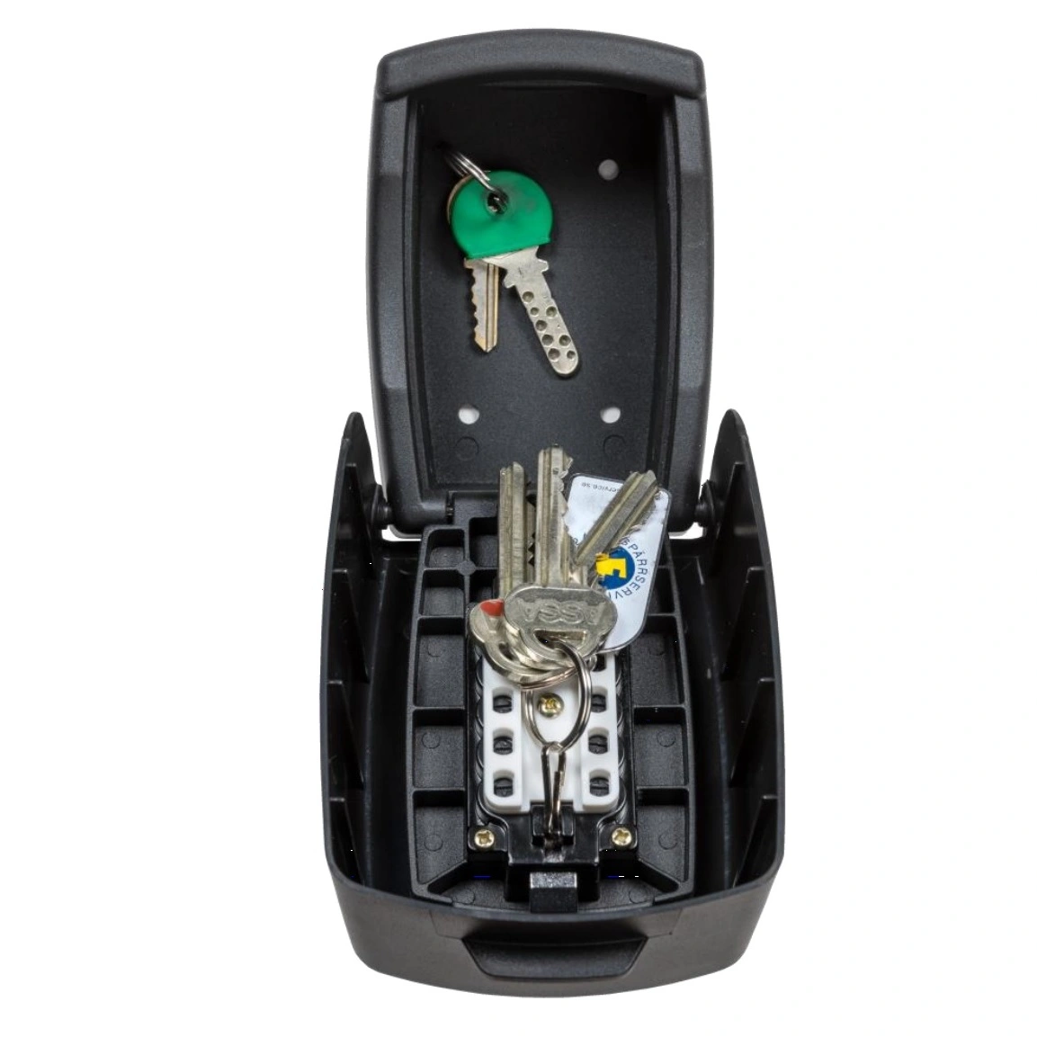 T26 är en stor nyckelgömma för förvaring av större nyckeltyper såsom bilnycklar, nyckelknippor, bomnycklar, passerkort, mm. Gömman är helt mekanisk och lämpar sig utmärkt för utomhusbruk vid t.ex. jaktstuga, garage, förråd, sommarstuga, mm. Kommer med skruvsats samt väderskydd.