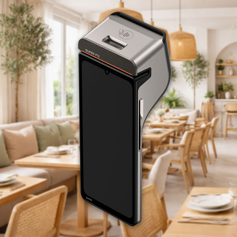 Sunmi P3 är en trådlös kassaterminal med inbyggd kvittoskrivare som även klarar kortbetalningar med chip. En komplett kassa, helt enkelt!