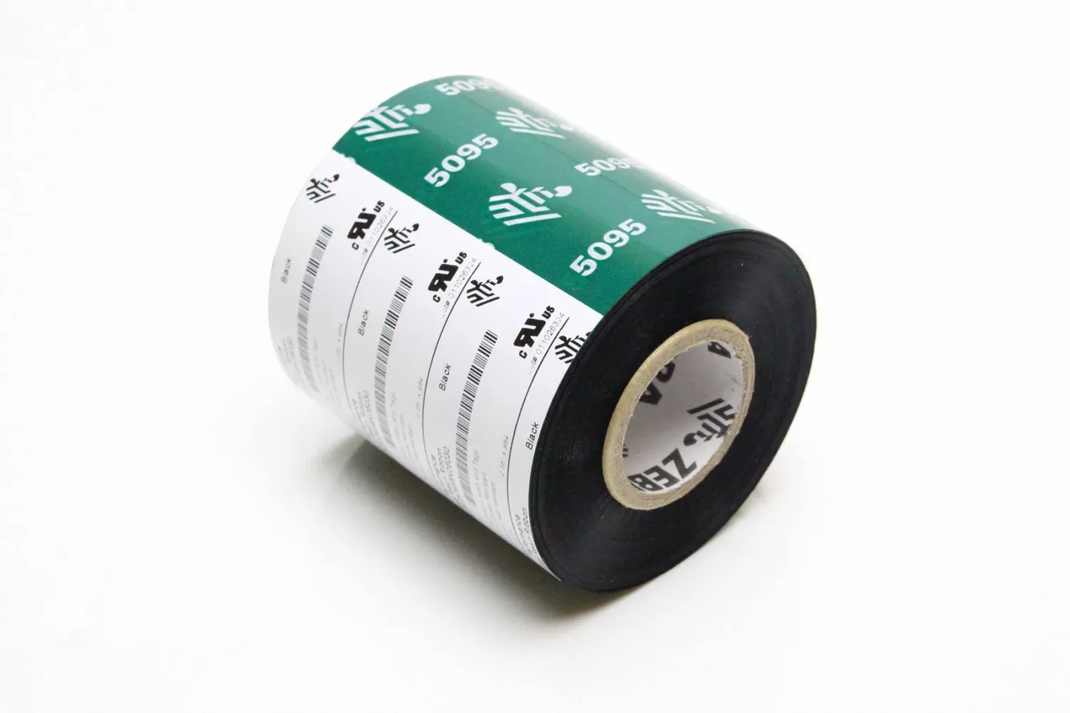 Termotransferband som används i termotransferskrivare för utskrift av etiketter. 60 mm brett, 300 m långt. Zebra 5095 harts (resin).