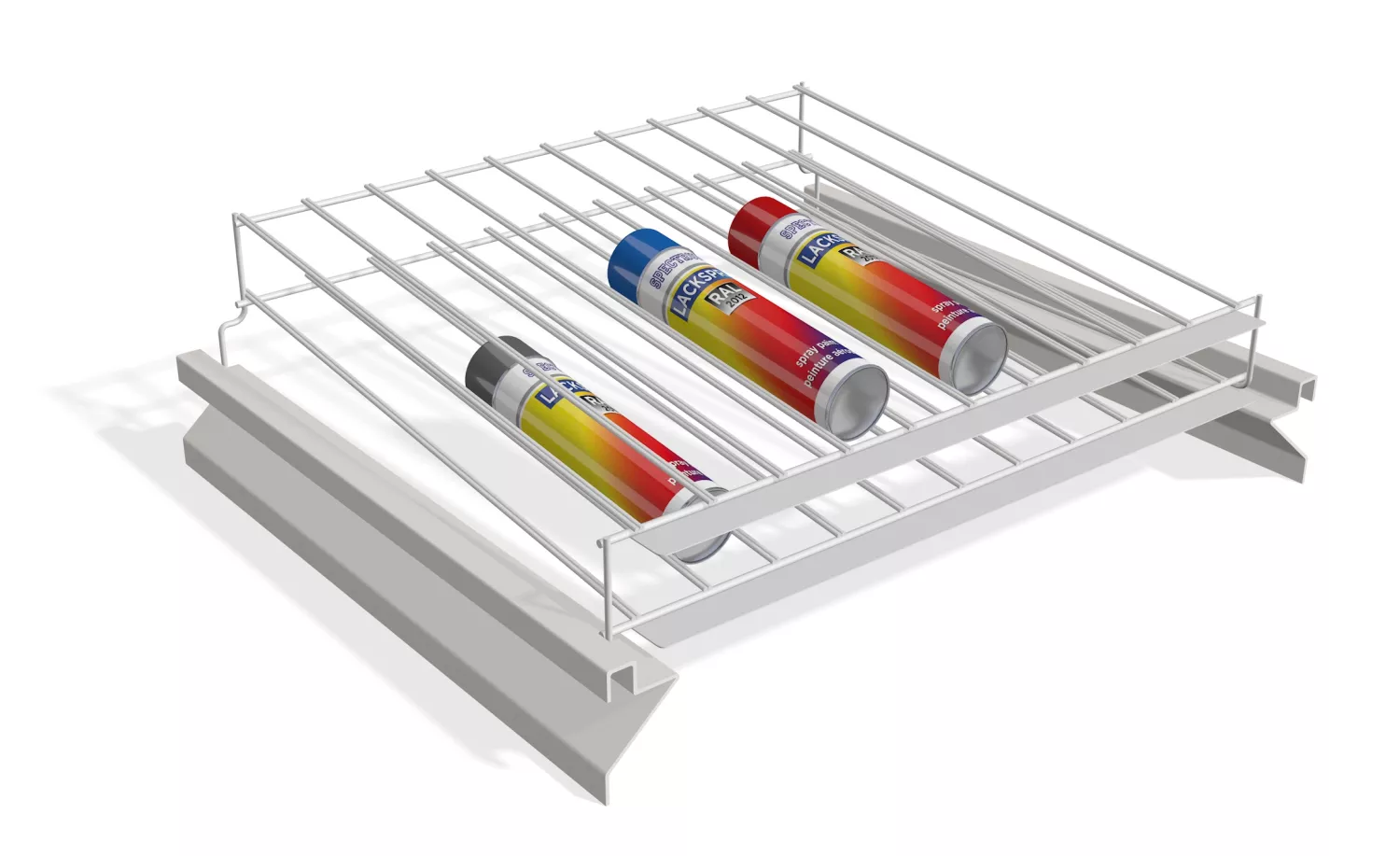 Trådhylla för säker förvaring av tuber, burkar och flaskor till de brandavskiljande skåpen FF90-2 och FF90.