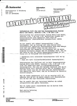 För att vi skall kunna avanmäla kassan så måste Skatteverkets klisterlappar med ID-nummer finnas på kassan och kontrollenheten. Finns inte klisterlapparna där så uppgraderar vi kassan men ni måste själva avanmäla kassan och anmäla den nya versionen.
