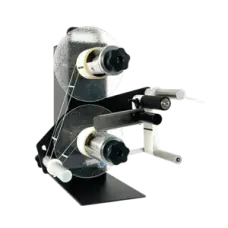 Uppspolare för upprullning av etikettrullen. Uppspolaren används vid produktion av stora etikettmängder, och gör det lättare att trycka många etiketter utan att behöva riva av dem från munstycket. Med uppspolaren rullas de tryckta etiketterna upp på en ny rulle, som man sedan kan ta etiketterna ifrån för enklare hantering.