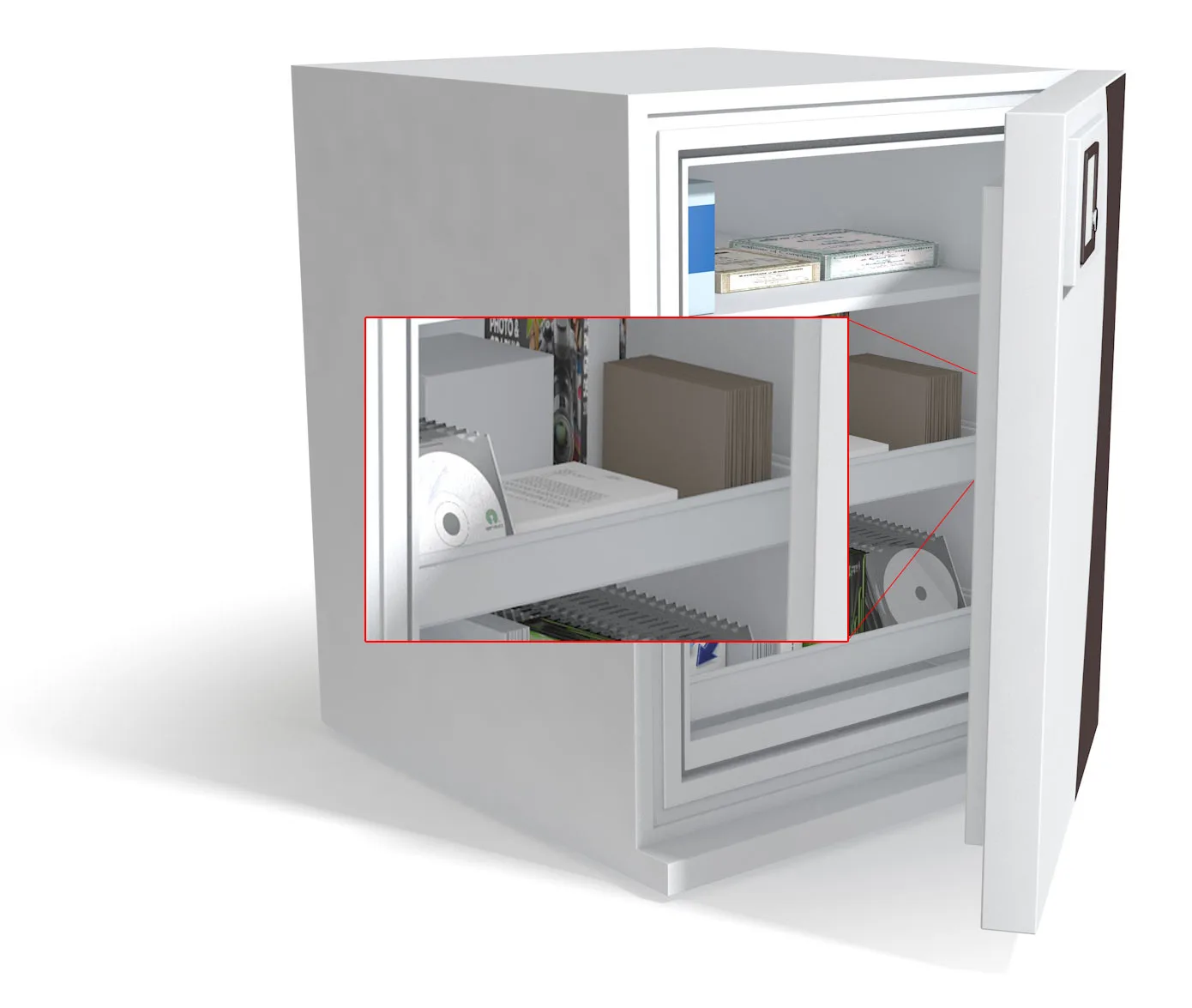 Utdragbar låda till datamediaskåpet Dataguard 80.