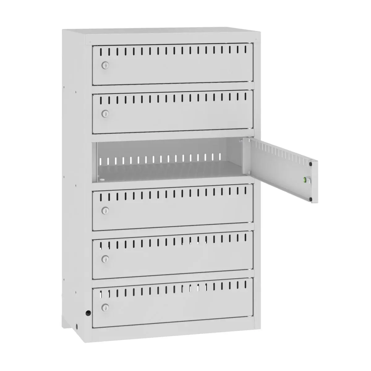 Vägghängt laddskåp för cykelbatterier, 6 fack, Hänglåsklyka, Jolt-W6
