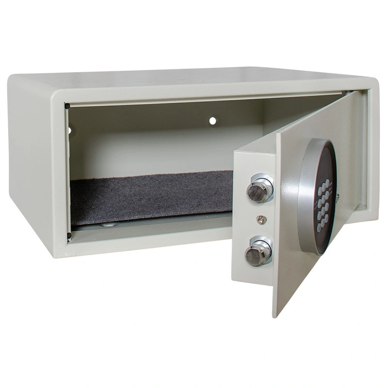 Skåpet är byggt med en stöldfördröjande funktion: 3 mm stålplåt kring skåpväggarna och 6 mm vid dörren. Skåpet är relativt brett, och rymmer t.ex. bärbara datorer, surfplattor och liknande föremål.